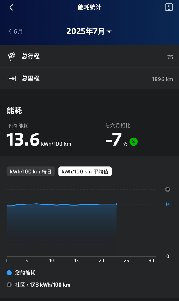 截止完稿的时候,这个月我一共行驶了1896公里。对于日常上班通勤的粉丝朋友们不算多,也不算少,路况就是城市高速路和拥堵公路,所以我自己觉得是有一定代表性的。这个月在每天打开空调的情况下,我的综合电耗是13.6kWh/100km,而iX3的电池包是80度电,所以换算下来,满电的最大续航里程是可以达到580公里的。