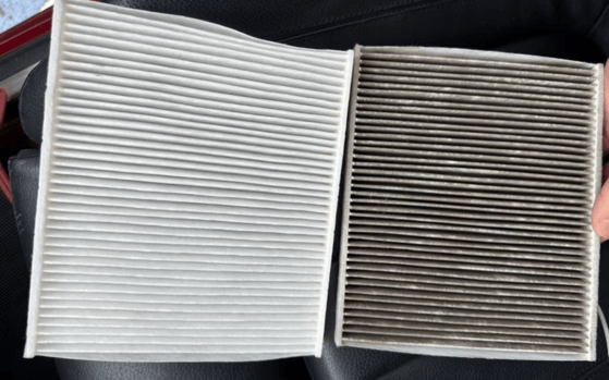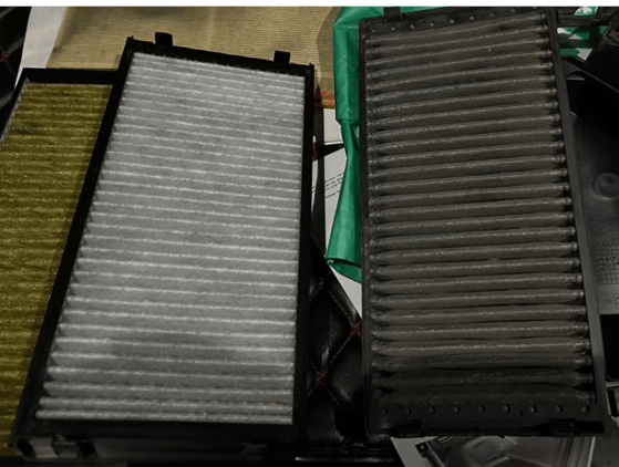 可以看到使用一段时间的空调滤芯真的非常的脏。