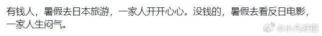 因为无论它们所发的是文字还是图片,主要目标就是传播所谓的“有钱人暑假去日本玩一家人开开心心,没钱人暑假看反日电影一家人生闷气”。