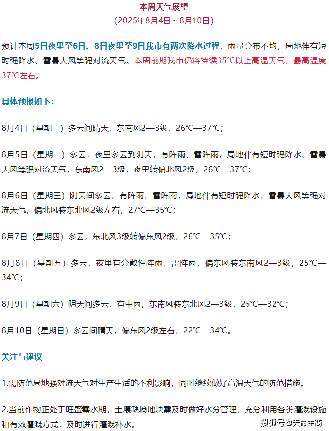 持续高温闷热天气+降水!商丘一周天气预报出炉
