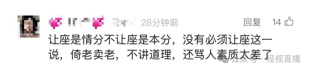 当事人 孙女士:“(老太太说她)脚受伤了,一直恶狠狠盯着我,我说我怀孕了,我让不了,老太太坐在我旁边,她家老头就开始骂我。”