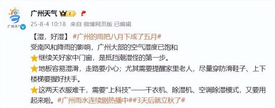 8月4日,据广州天气消息,受南风和降雨的影响,广州大部的空气湿度已饱和。