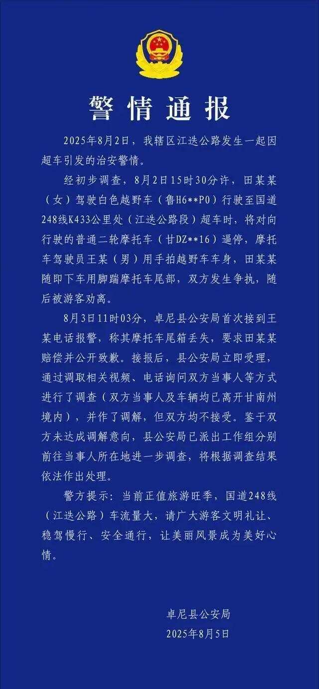 8月5日,卓尼公安发布警情通报: