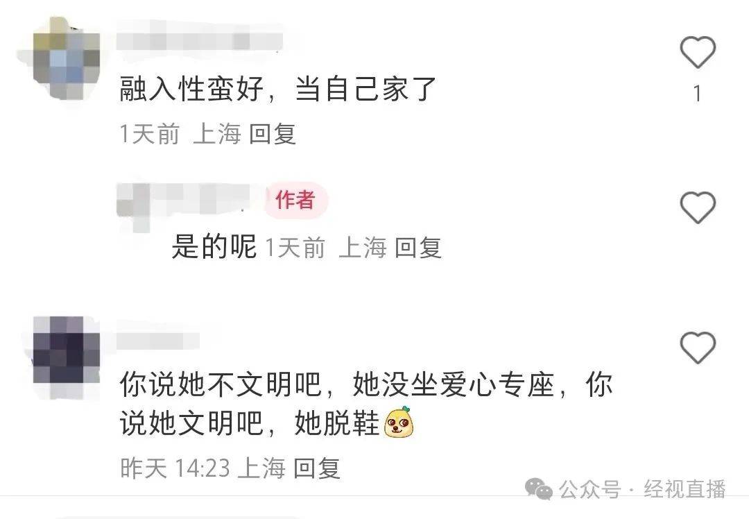 近日,IP地址为上海的网友发帖称,在上海地铁17号线上目睹一名女子赤脚盘坐座位的不文明行为,其脚部疑似患有灰指甲的情况引发网友对卫生安全的担忧。