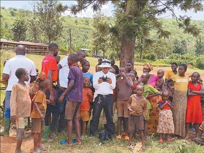 中国农业专家在布隆迪布琼布拉农村省操作无人机设备以监测农田。