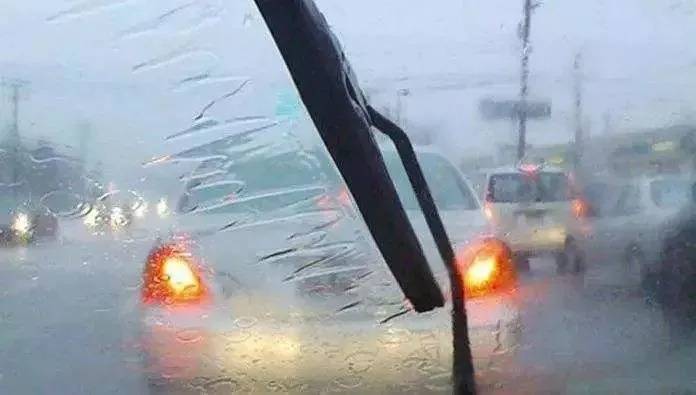 打开雨刮器,及时清理雨滴;天气昏暗时,开启近光灯和雾灯;如玻璃上面有雾气,要及时开启空调吹散雾气。