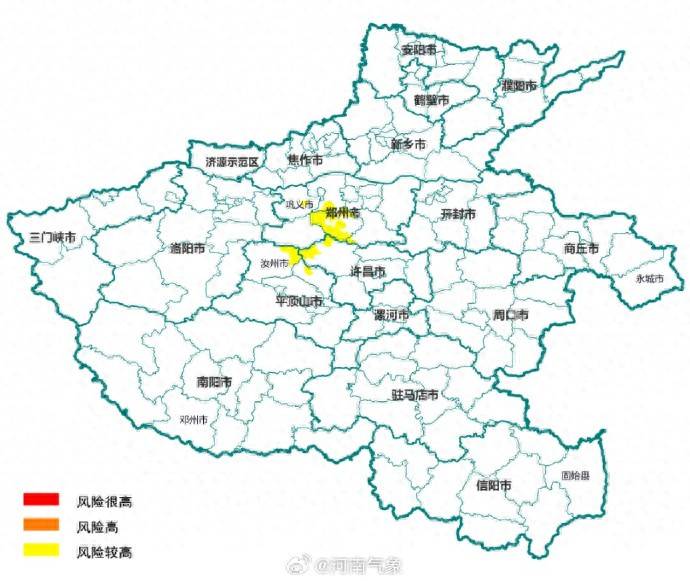 2025年8月6日8时至6日20时,河南省地质灾害气象风险预警达到黄色预警的区域为:郑州南部,平顶山北部,许昌西北部,发生地质灾害的风险较高。