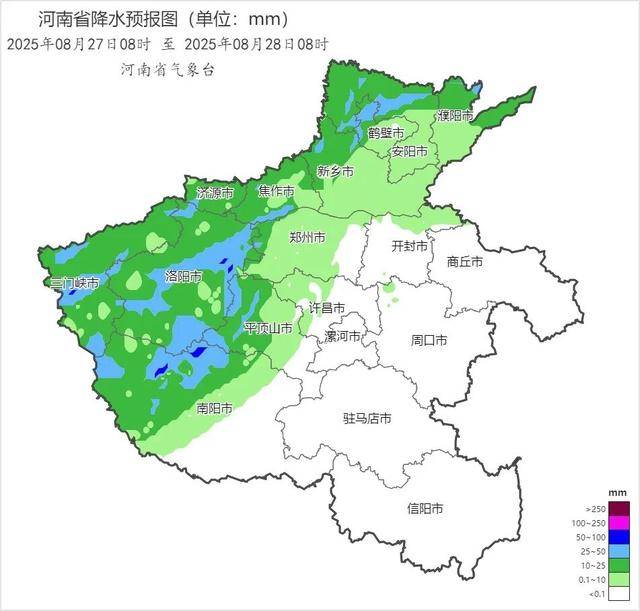 预计今天下午到夜里,黄河以北、西部和西南部部分县市有中雨,局部大雨或暴雨并伴有短时强降水、雷暴大风等强对流天气;明天,西部、北中部部分县市有中雨,局部大雨或暴雨并伴有短时强降水等强对流天气。29日,南部部分县市有中雨,局部大雨或暴雨并伴有短时强降水等强对流天气。