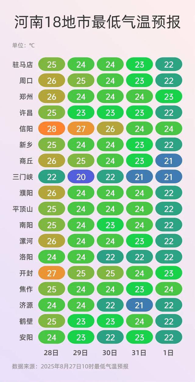 30日之前,我省35℃高温范围主要集中在东部和南部地区→27日,南部最高气温35到37℃,局部37到39℃;28-29日,东南部最高气温37℃以上。30日之后,全省大范围35℃高温天几乎不见,多地的最低气温也逐渐降至22℃上下。