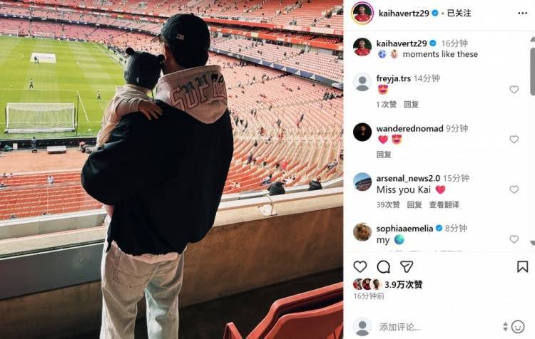 见证大胜,哈弗茨社媒晒抱着孩子现场看球照片:就像这样的时刻!