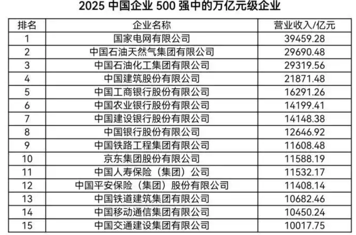 据悉,这份榜单以2024年企业营业收入为入围标准,入围门槛较上年提高5.79亿元,达到479.6亿元。国企、民企入围企业数量保持基本均衡格局,分别为251家、249家。有15家企业营业收入超过了万亿元。