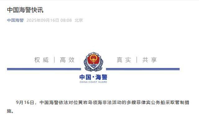 中国海警依法对位黄岩岛领海非法活动的多艘菲律宾公务船采取管制措施