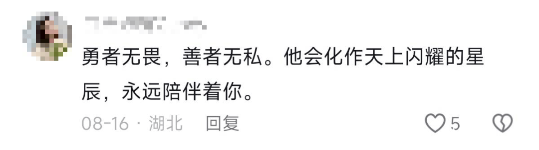 感谢信中深情写道:“他平凡的身影,绽放出震撼人心的光芒。没有人知道,其实他也只学过简单的游泳技巧,没有救生衣、没有救生圈,那一刻他的眼里只看到,一个比他更年幼的生命需要援救……”