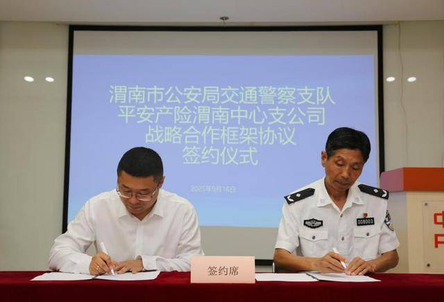 9月16日,渭南市公安局交通警察支队与平安产险渭南中心支公司举行了《“警保联动共建平安大道”战略合作框架协议》签约仪式。市公安局党委副书记、交警支队支队长闫丰胜和平安产险渭南中心支公司总经理韩熠代表双方在合作协议上签字。国家金融监督管理总局渭南监管分局副局长刘洋、渭南市保险行业协会秘书长张海明、市公安局交警支队副政委孟涛、刘力及各单位相关部门负责同志参加签约仪式。