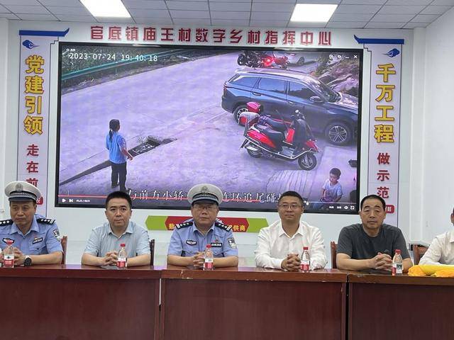 签约仪式后,与会人员实地验收了临渭区东纵路庙王村口交通信号灯安装应用情况,并在当地开展了交通安全警示教育宣讲,交警通过视频展示交通安全警示片,让村民感受到遵守交通安全的重要性,通过现场提问调动村民积极性,普及安全教育理念,并现场向村民捐赠了安全头盔、反光警示贴、生活用品等物资,庙王村村委会向公安交警、平安产险分别赠送锦旗。