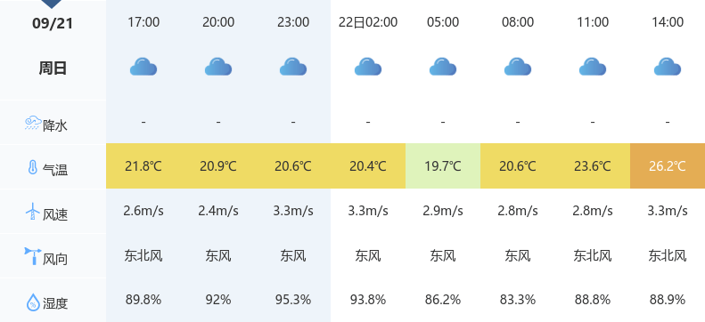 今天是2025年9月21日,咸宁白天天气为阴,夜晚天气为阴,最高气温23℃,最低气温19℃,白天微风,夜晚微风,空气湿度100%,体感温度24.4℃。建议公众注意高湿度环境下体感闷热,适时增减衣物,避免长时间处于潮湿环境中引发身体不适。
