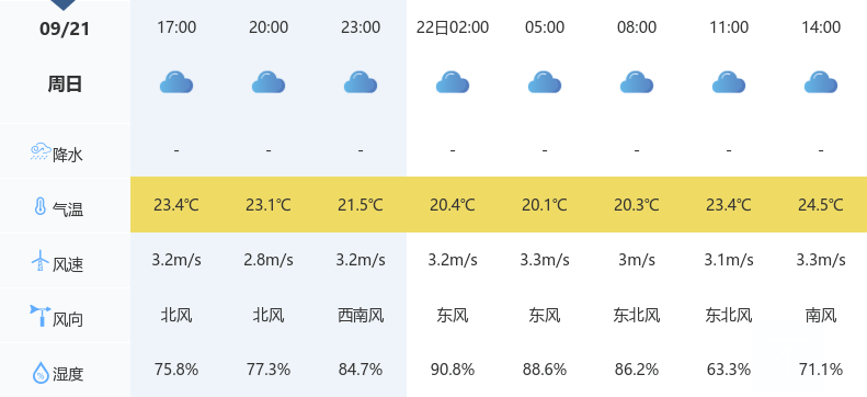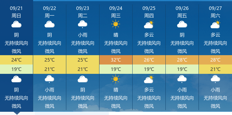 未来三天,恩施天气以阴转小雨为主,23日有小雨,24日转为晴天,气温波动在21℃至25℃之间,24日最高气温升至32℃,最低气温19℃,白天微风,夜晚微风。降雨期间道路湿滑,出行请注意交通安全,雨后升温明显,户外活动注意补水防暑。