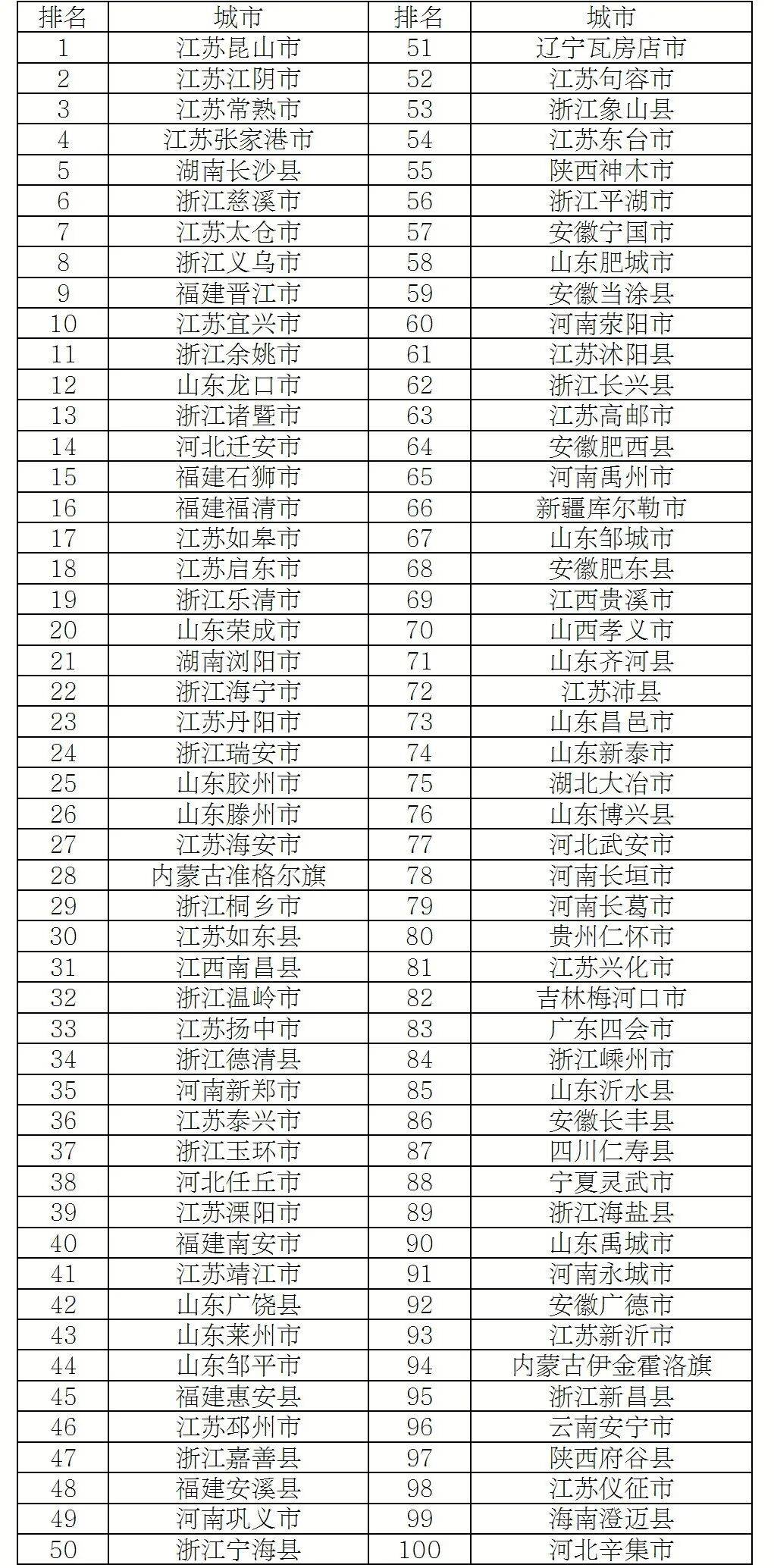 2025年度全国综合实力百强县市