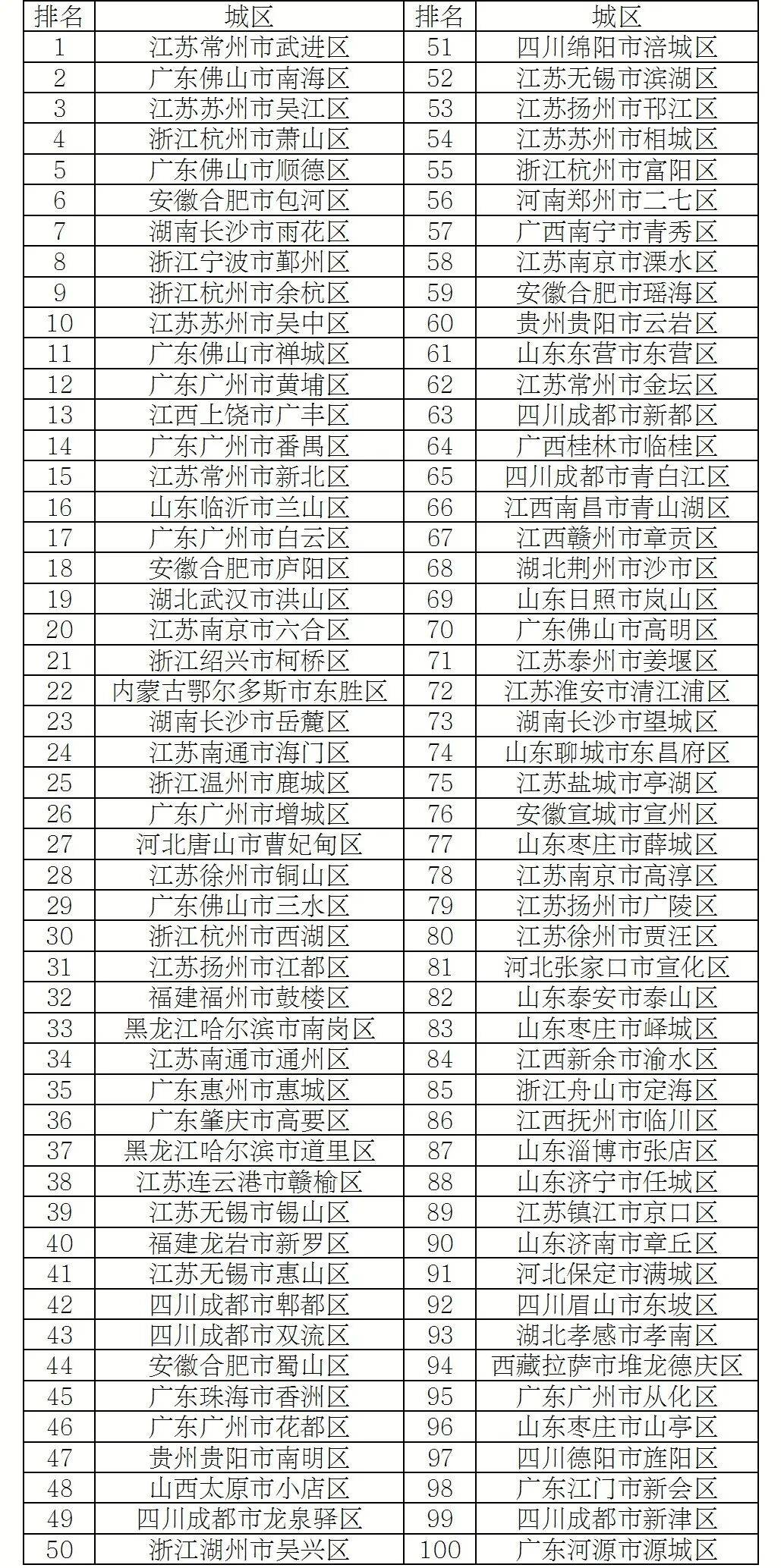 2025年度全国综合实力百强区
