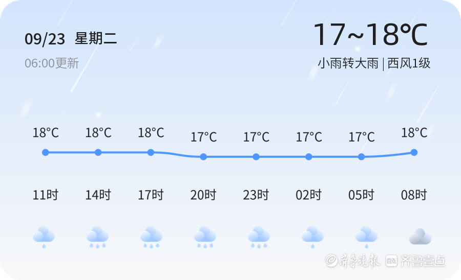 今天是2025年9月23日,星期二,农历八月初二。淄博市迎来小雨转大雨的天气,气温在17℃至18℃之间,西风1级,空气湿度达到100%,空气质量状况为良好(PM2.5为48)。今日是二十四节气中的秋分,昼夜平分,天气凉爽。市民需注意携带雨具,出行时请注意交通安全,雨天路滑,减速慢行。秋分时节,昼夜温差加大,提醒市民适时添减衣物,注意保暖,同时注意平衡饮食,保持身体健康。