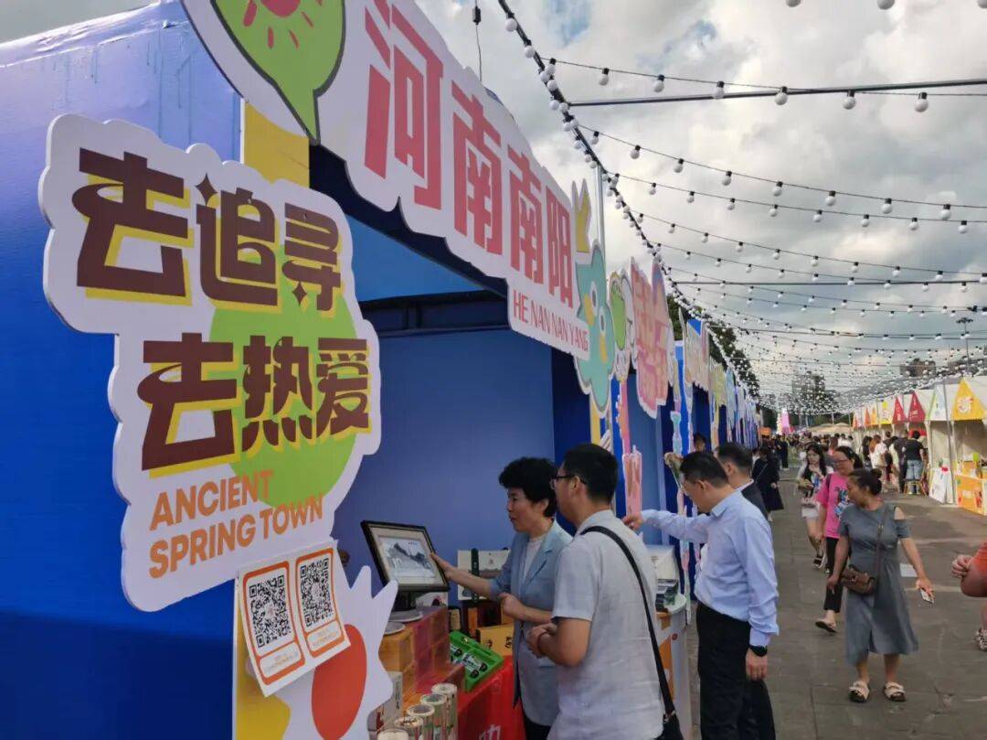 活动现场,南阳城市会客厅展台前热闹非凡,不少市民、球迷特意驻足观看咨询,近距离端详各类文创展品。工作人员为他们热情介绍赊店古镇及南阳其他县区丰富的旅游资源,展示各种设计精美的文创产品。