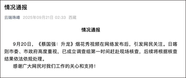 该活动引发轩然大波后,9月21日凌晨日喀则市委、市政府通过微信公众号“云端珠峰 ”发布情况说明。说明称,日喀则市委、市政府高度重视,已成立调查组第一时间赶赴现场核查,后续将根据核查结果依法依规处理。