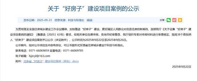 据了解,本次公布的案例共38个项目,分为保障性住房、既有住宅改造、已竣工新建住宅、在建新建住宅四类,公示期为2025年9月22日至2025年9月26日。