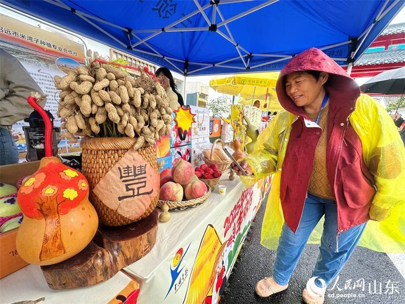 2025年中国农民丰收节全国主场活动中,参观者在乡村大集上拍照打卡。人民网 乔姝摄