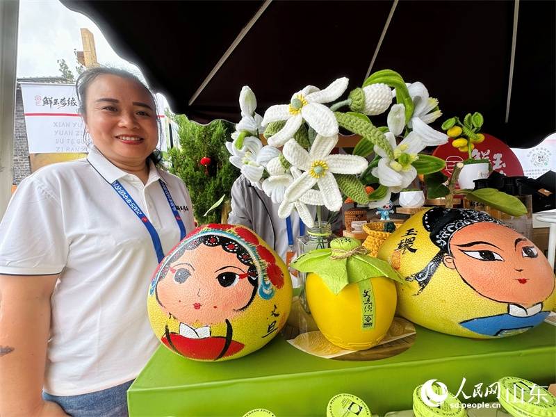 浙江台州玉环市参展单位,带来文旦柚及衍生产品。人民网 乔姝摄