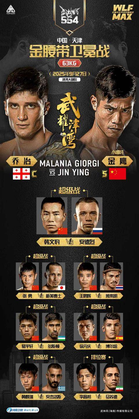 而“武林风”IP 则以“体育 + 文化”的双重属性,成为联结历史与当下、中国与世界的纽带。作为中国原创的顶级搏击赛事 IP,“武林风”不仅具备“热血对抗”的体育吸引力,更承载着“尚武精神”的文化内核。此次“武林风 554 高端数字赛”,堪称“星光熠熠” 的国际格斗盛宴:WLF MAX 63 公斤级金腰带卫冕战中,中国 “小哪吒”金鹰将迎战格鲁吉亚“金童” 乔治・马拉尼亚,前者以“我命由我不由天”的韧性从平凡选手成长为世界顶尖高手,后者曾WLF MAX 63 公斤级金腰带的荣誉战绩获本国文化部嘉奖,这场“地表最强 63 公斤级对决”,既是体育竞技的巅峰碰撞,更是两种拼搏精神的对话;此外,“龘龘兄弟”李昌邦与泰拳高手马苏德的70公斤级排位战、“金刚”韩文豹的回归首战以及“中原小霸王”徐元庆的骁勇出击,共同构成了“中外豪强正面碰撞”的精彩阵容。