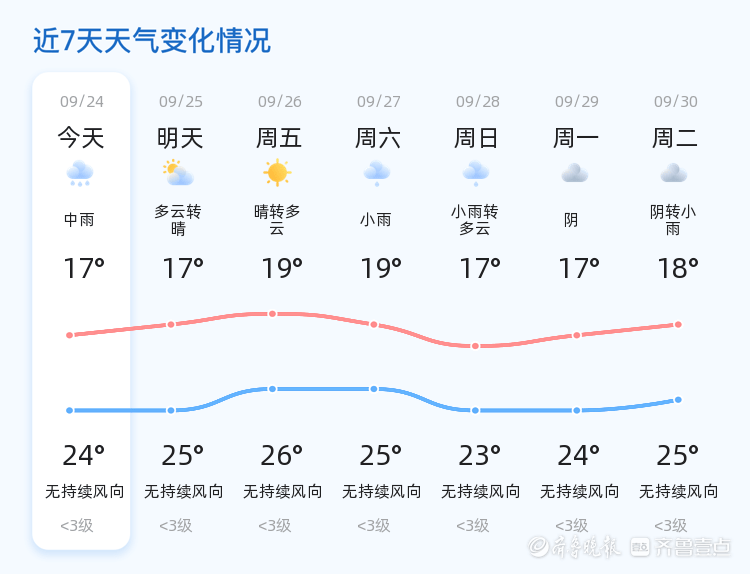 未来三天,日照市天气趋势为先晴后雨。周五(9月26日)天气晴转多云,气温在19℃至26℃之间;周六(9月27日)有小雨,气温在19℃至25℃之间;周日(9月28日)天气小雨转多云,气温在17℃至23℃之间。提醒市民关注天气变化,及时添减衣物,特别是雨天出行时注意防滑和交通安全。