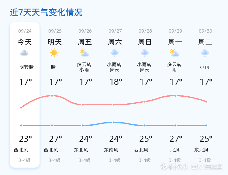 未来三天,烟台市天气趋势呈现多变特点。周五(9月26日)预计为多云转小雨,气温17℃至24℃,风力东北风3-4级。周六(9月27日)小雨转多云,气温18℃至24℃,风力东南风3-4级。周日(9月28日)天气为小雨转多云,气温17℃至25℃,风力西北风3-4级。市民需注意天气变化,尤其是周五的小雨天气,出行时建议携带雨具,防范降雨带来的不便。