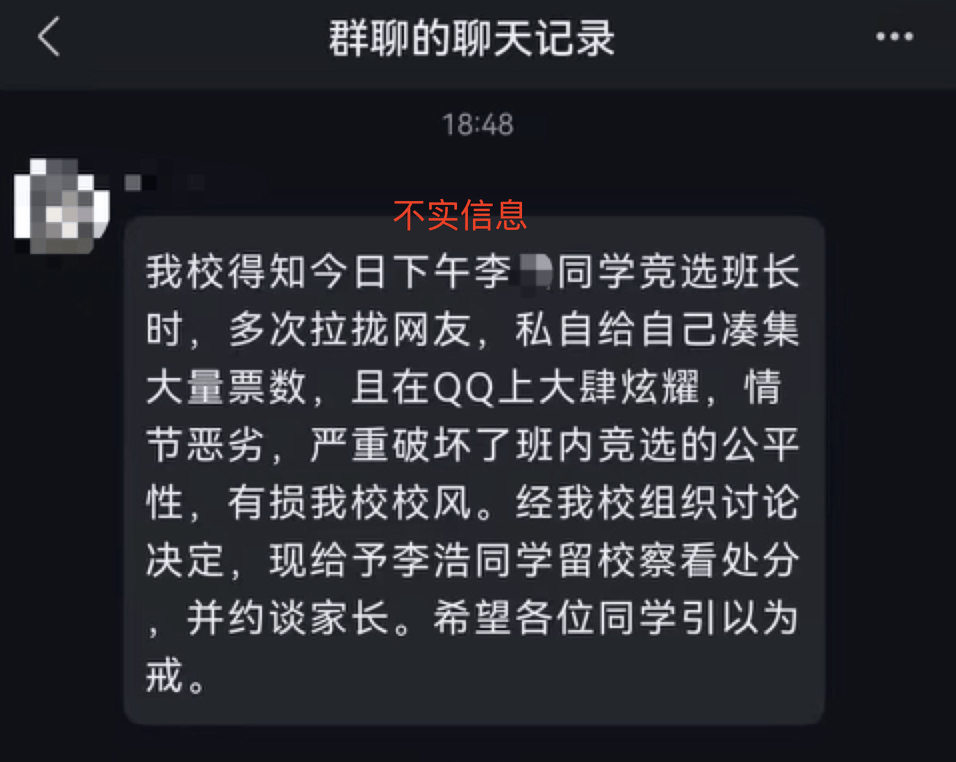 一位知情人告诉记者,当时把李某的投票转发至群聊的朋友很害怕,担心学校对其进行处罚。且知情人告诉记者,此前出现对李某的处罚为虚假信息。