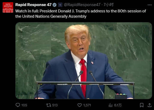随后,特朗普继续抱怨联合国未支持其结束全球冲突的努力。他说,他在短短七个月的时间里,在没有联合国帮助的情况下,结束了“七场无法结束的战争”。