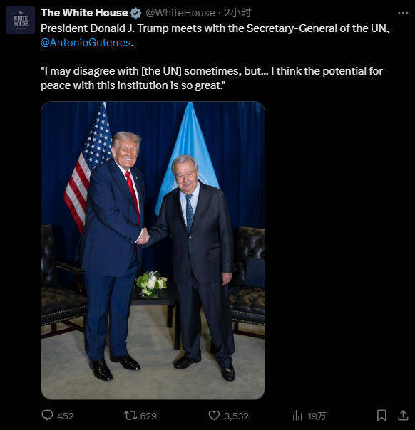 在贬低联合国后,特朗普与古特雷斯会面推文截图