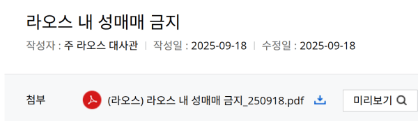 韩国驻老挝大使馆发文,标题为《老挝境内禁止性交易》。