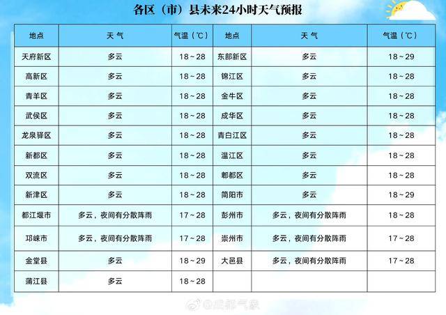 预计未来三天我市以多云间阴天气为主,三日最高气温分别为29℃、29℃、28℃。