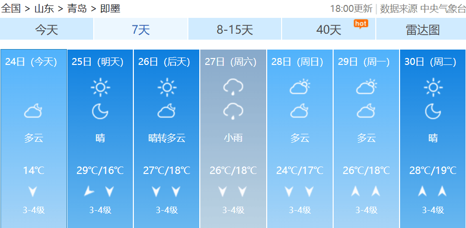 近日青岛天气