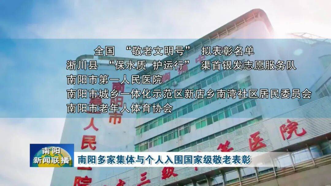 在全国“敬老文明号”拟表彰名单中,淅川县“保水质护运行”渠首银发志愿服务队、南阳市第一人民医院、南阳市城乡一体化示范区新店乡南湾社区居民委员会、南阳市老年人体育协会等南阳集体入围。
