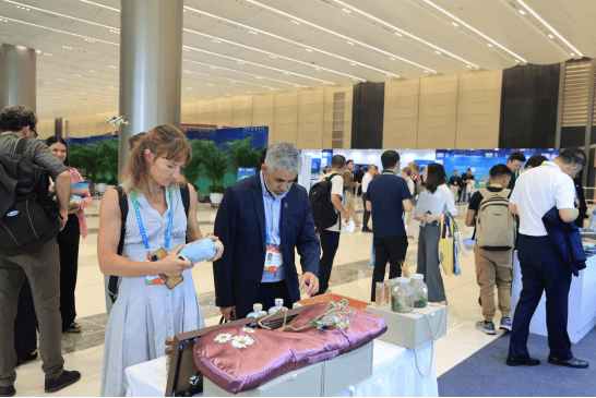 展览现场,宝天曼带来的丰富多样的文创及生态产品同样吸引“眼球”。宝天曼鼠标垫、胸章、书签、丹江口水库南水北调拼图、黄精、毛华菊、金钗石斛、石榴等产品琳琅满目。凭借独特新颖的展示形式,五湖四海的国内外友人纷纷竖起大拇指为宝天曼点赞。