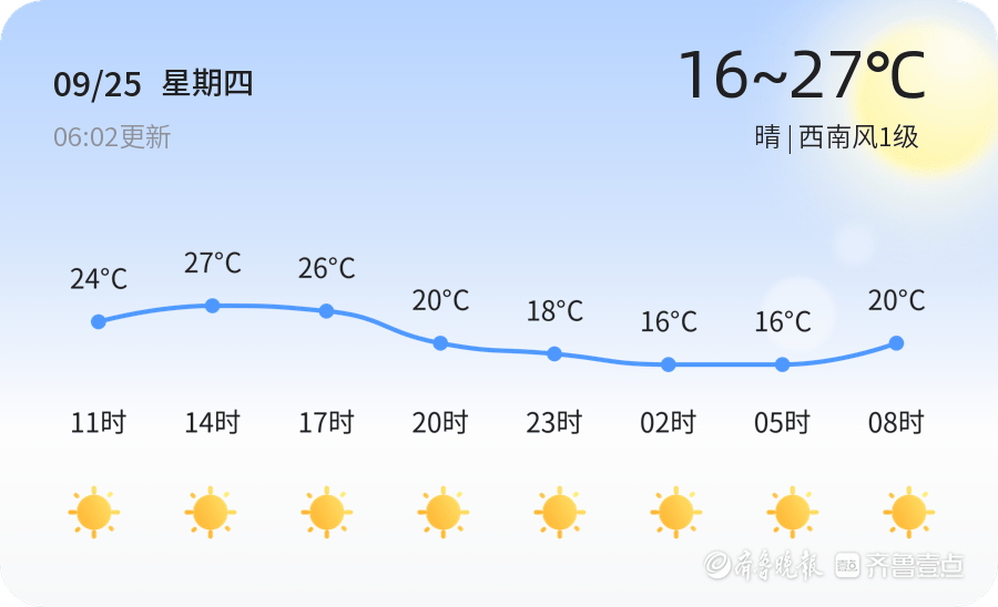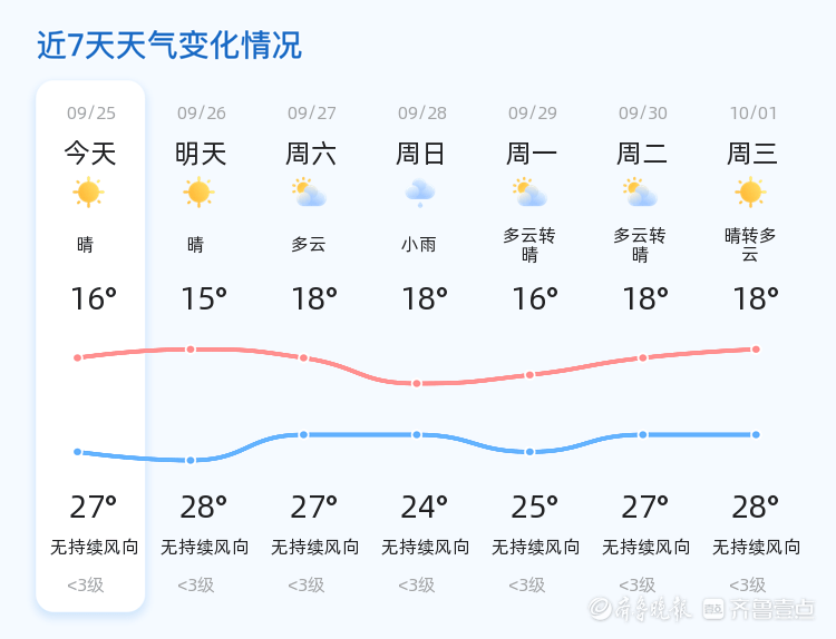 明天(9月26日)的天气将继续保持晴朗,与今天相比,气温略有上升,最低气温15℃,最高气温28℃。风力依然较小,无持续风向,市民可以继续享受秋日的温暖阳光。