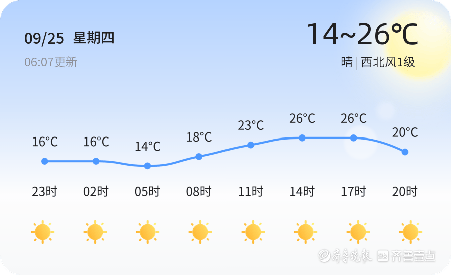 今天是2025年9月25日,农历八月初四,星期四。聊城市区今天天气晴朗,气温在14℃至26℃之间,西北风1级,空气湿度较高,达98%。空气质量方面,PM2.5指数为45,属于良好水平。然而,由于湿度较大,部分地区可能出现雾气,市民出行时请注意安全,尤其是早晨时段,能见度可能较低,建议驾驶时减速慢行。今天是适合户外活动的好天气,但早晚温差较大,市民出行时请注意保暖。未来三天,聊城市的天气以晴到多云为主,气温逐渐回升。明天(9月26日)最高气温可达27℃,最低气温15℃,天气晴朗,适宜出行。后天(9月27日)天气转为多云,局部地区可能有小雨,市民需注意携带雨具。此外,28日(周日)天气可能再次出现小雨转多云的情况,建议市民及时关注天气变化,合理安排出行计划。温馨提示