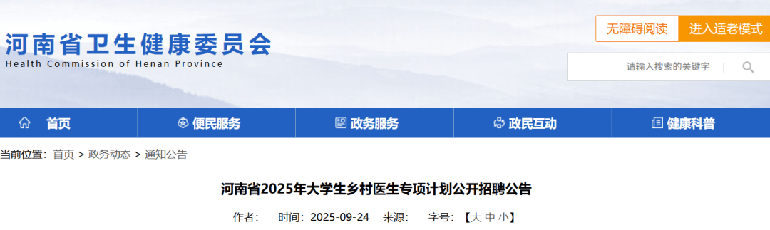 河南省2025年大学生乡村医生