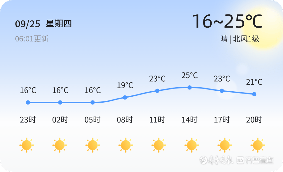 今天是9月25日,星期四,农历八月初四。枣庄市今日天气晴朗,北风1级,空气湿度为97%,PM2.5浓度为44,空气质量状况为良好。目前气温为14.5℃,预计今日最高气温25℃,最低气温16℃。市民出行时请注意防晒和保暖,随身携带雨具以备不时之需。此外,今日凌晨至上午,枣庄市部分地区出现大雾天气,局部能见度低于50米,大雾橙色预警已发布,请市民注意交通安全,减速慢行,保持车距。滕州和峄城区的市民需特别注意大雾对出行的影响。
