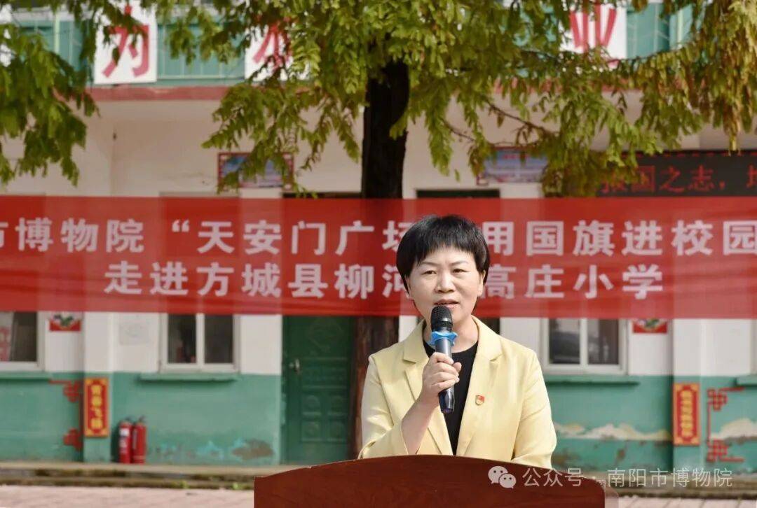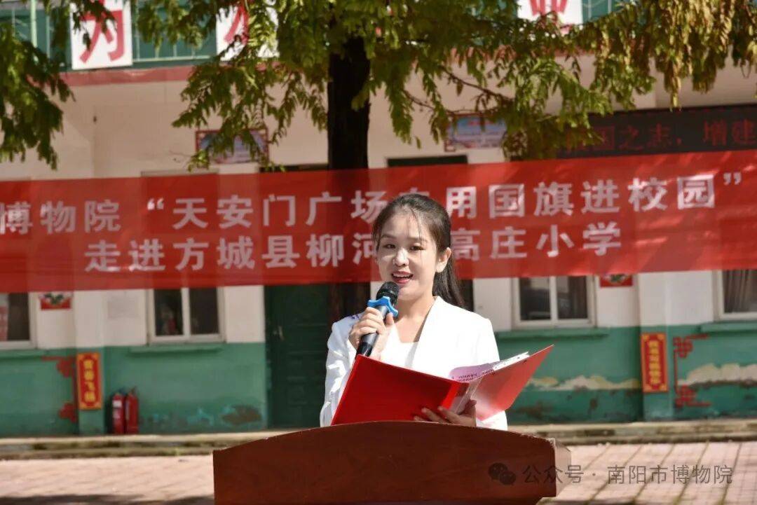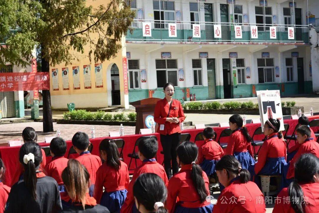 9月24日,南阳市博物院社科普及活动走进方城县柳河镇高庄小学,南阳市博物院副院长李红,柳河镇中心学校校长许来贺、南阳市博物院驻柳河镇高庄村第一书记吴涛、高庄小学校长周堂印等,市博物院陈列部、社教部研学团队及全体师生参加。