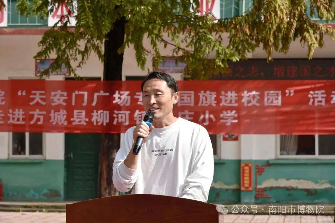 许来贺在致辞中强调:“今天这面国旗走进柳河镇高庄小学的校园,就是为了将这份厚重的爱国精神,最直接、最鲜活地传递给我们每一位师生。这是一次跨越山河的对话,这是一堂无声却最有力量的爱国主义教育课。同学们,你们是幸福的一代,更是肩负重任的一代。这面神圣的国旗来到我们身边,是一次难得的机遇,更是一次深刻的启迪。”