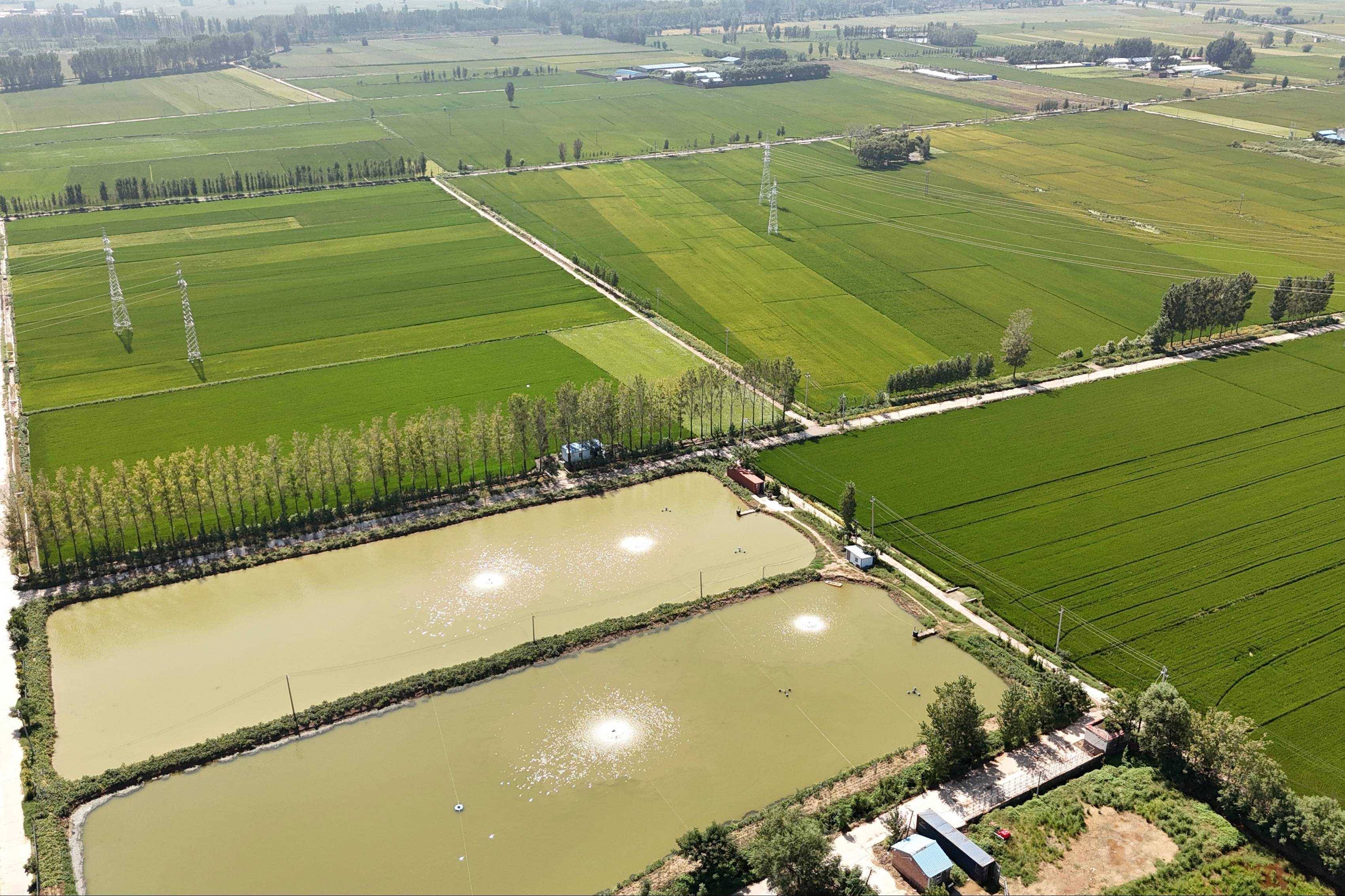 俯瞰稻蟹生态种养基地。(无人机照片)王士豪 摄