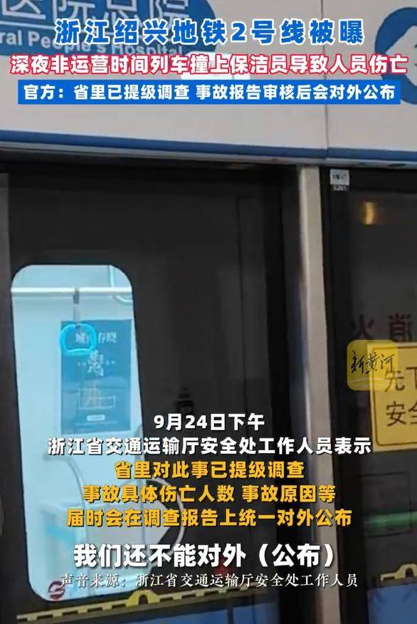 据新黄河报道,绍兴市轨道交通2号线9月13日晚曾发生一起地铁列车撞上保洁员致多人伤亡的安全事故。知情人士透露,事故发生后,省交通运输厅曾在全省交通管理系统内部分发传达一文件,内容提及该事故发生在9月13日23时30分许,致3人死亡1人受伤。当晚事故发生时间,是在末班车结束后的非运营时间。
