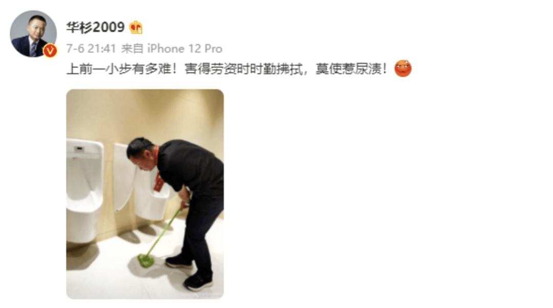 华杉负责的是华与华新办公室32楼男厕卫生,31楼厕所的标语是“让干净看得见闻得到”,害得他每次进去都深呼吸使劲闻。