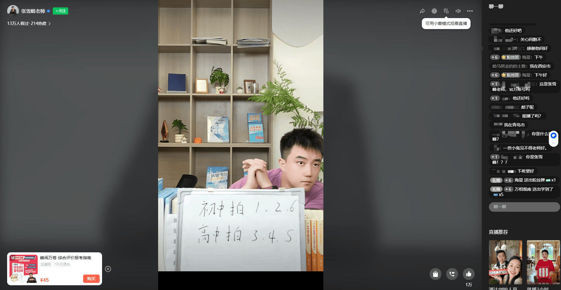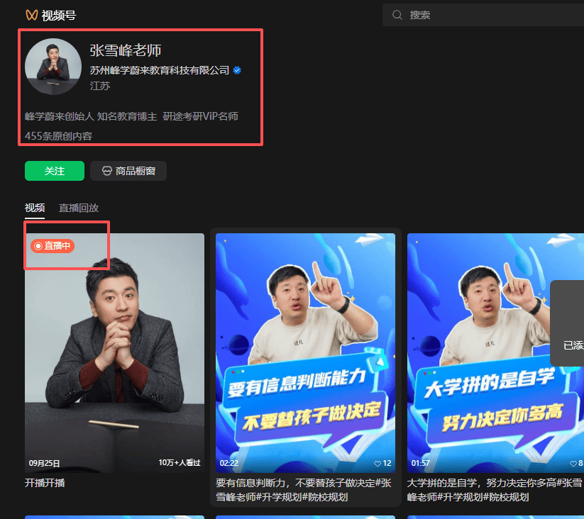 △记者注意到“张雪峰老师”的视频号账号今日仍在直播,张雪峰本人并未出现在直播间